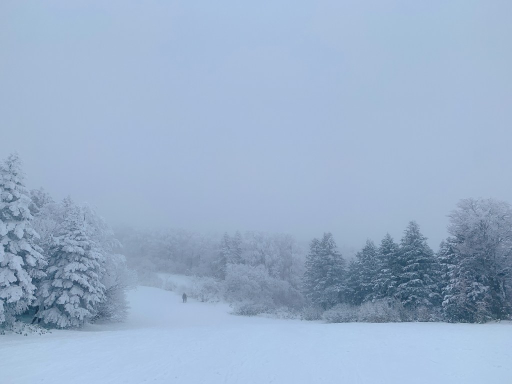 說完沒雪的山寺,接下來是反差極大地藏王溫泉區了。不過,以這個季節來說,這樣的雪量對藏王還是偏少,正常來說樹冰應該要看不出樹枝樹葉的樣貌了,暖冬的威力驚人啊。是說反正還是有一訂的雪量,就搭了纜車上山頂看看,殊不知山頂整個大雪紛飛,可見度真的太差了,也不太敢亂走,只能匆匆地拍下一些照片就離開,連同夜間的點燈秀也放棄,乖乖回溫泉飯店去享用晚膳跟溫泉啦。(話說爹娘那一代的人們,是不是身體都有鍛鍊過,真的是比我們這一代的人耐寒許多噎。)