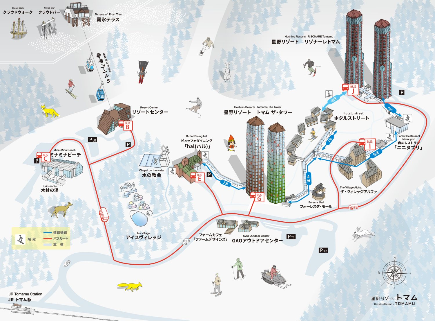 - 交通-2(Access-2):JR TOMAMU站(Japan Railway-Hokkaido, TOMAMU station)+ 飯店接駁車(Hoshino Resorts Shuttle Bus)