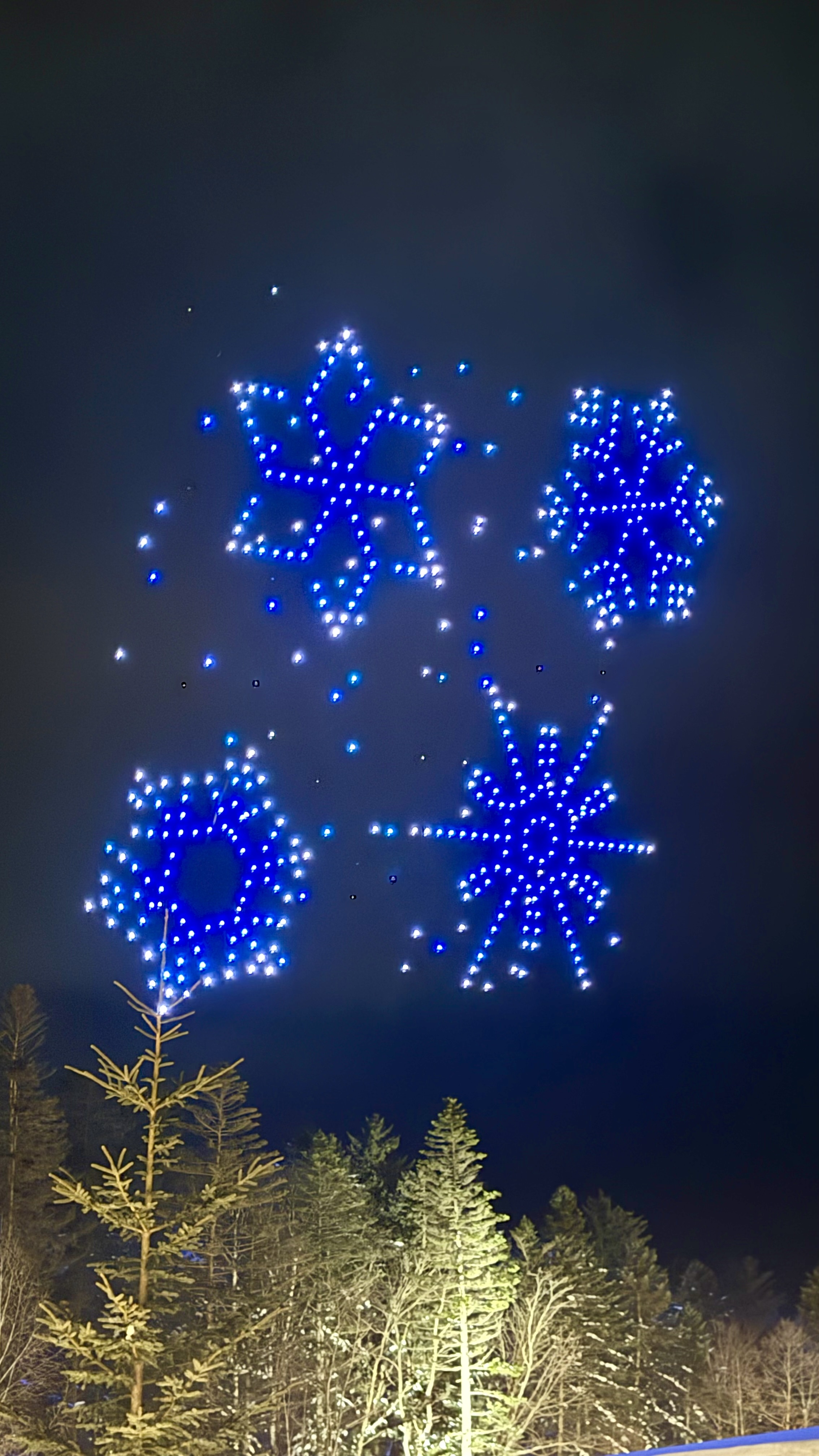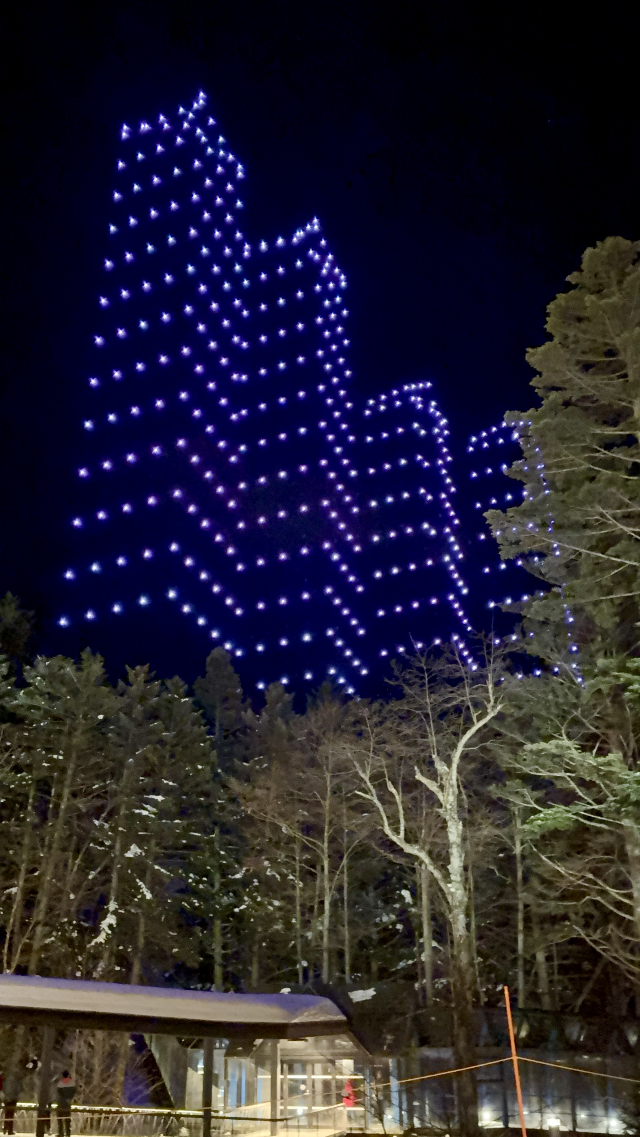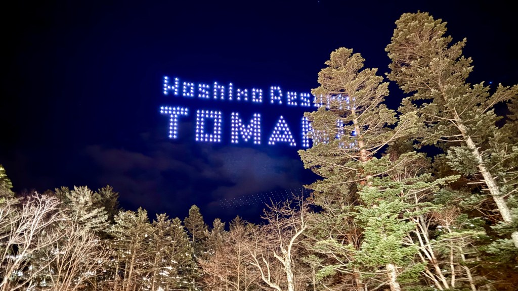 抵達星野度假村,經過飯店人員介紹得知晚上有兩場無人機的夜空秀,剛好我們前往Hotalu Street尋覓晚餐時遇上了大批的用餐人潮,索性就先觀賞了這限定的無人機夜空秀也順便打發一點等待候位的時間。整個表演的過程大約歷時10分鐘,內容結合了季節、北海道與TOMAMU度假村相關的題材。不過也許是因為過程中無人機燈光變換實在令人驚艷,總覺得看了蠻長一段時間的。這邊真的很建議帶個手套來,因為邊看右邊想拿出手機紀錄,整個手真的會凍僵。是一場蠻值得一看的夜空秀。