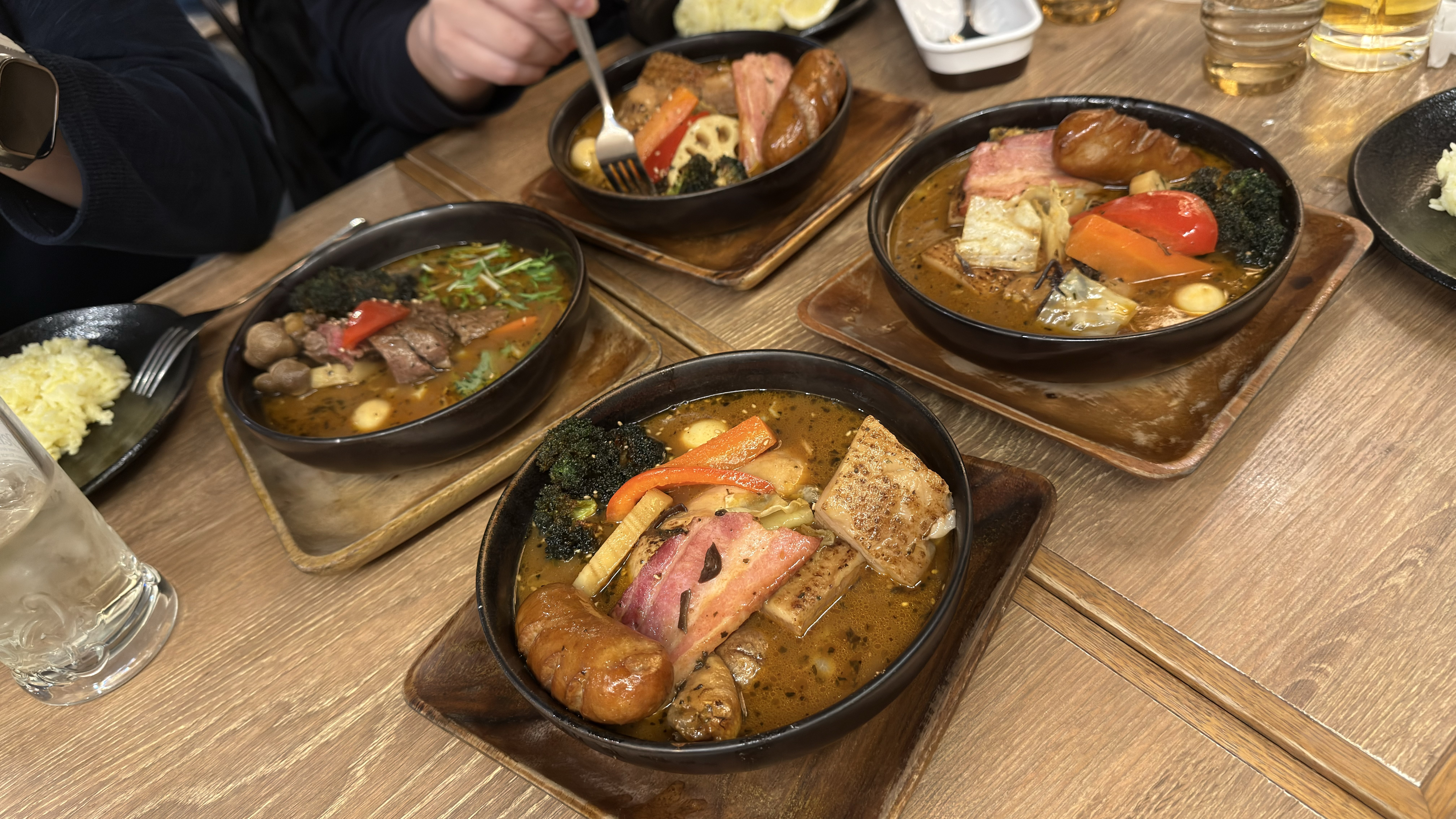這是我們來到星野度假村的第一餐,在找路與猶豫不決中決定的餐廳,結果就是要等上個1小時以上才能入場啦!因為剛來到,加上真的等了有點久,所以很不客氣地就點了「肉祭」,打算把蛋白質一次補好補滿。也不曉得是真的餓了還是口味真的不錯,雖然不理解湯咖哩但也覺得湯頭很不錯,配著白飯非常好入口。裡面滿滿的肉類也吃得很滿足,真的要挑惕大概就是覺得那三層肉總有一點不融入這道料理裡面吧,不過整體吃起來還是很不錯的。