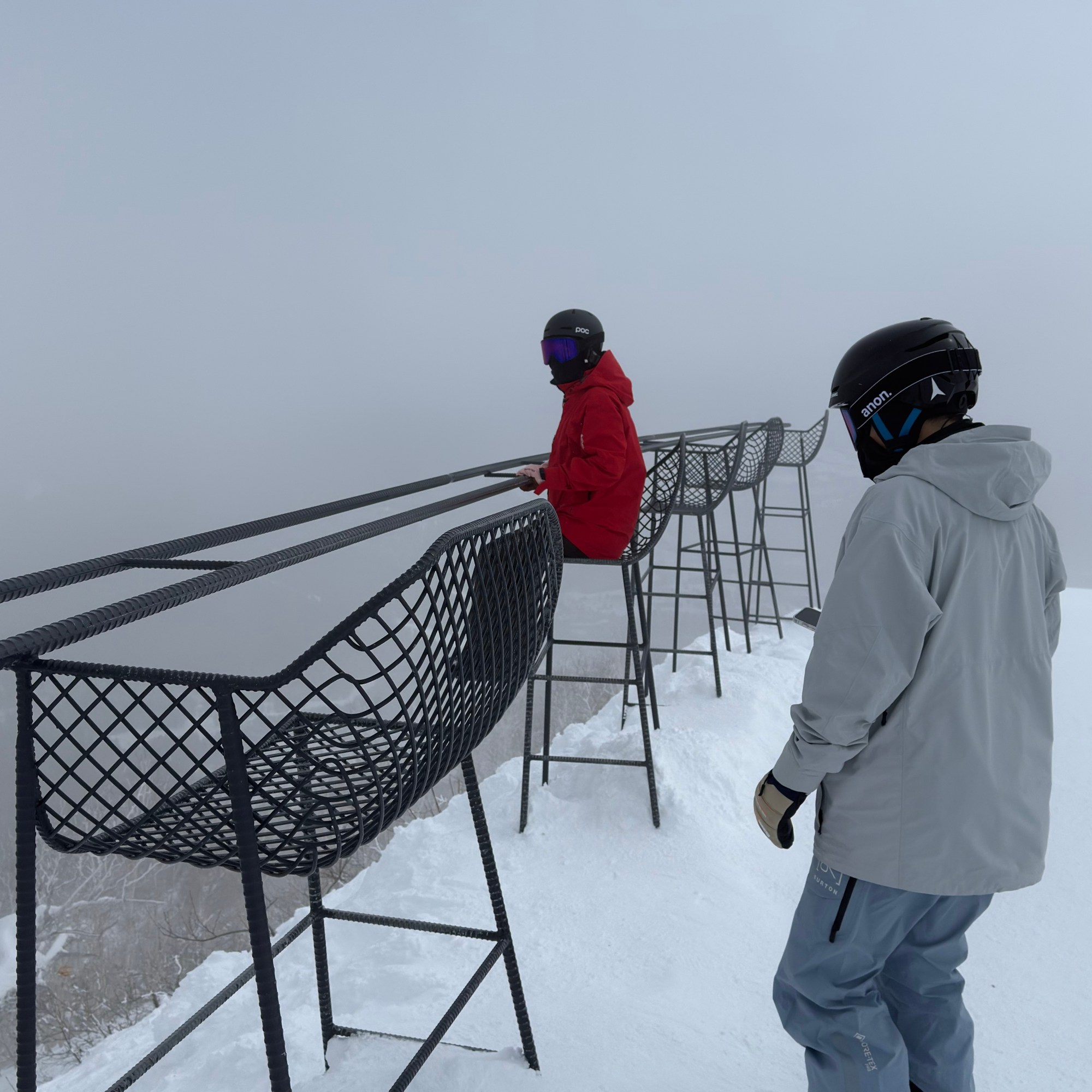 星野度假村跟Club Med分別在兩個山腳下,整個山頭都是滑雪場並且是共用的,有了雪票就可以兩個山頭任君挑選。從地圖可以知道能選擇的雪道真的很多,也是各種等級都有,非常豐富。由於我們是住在Risonare,所以我們都會從北棟通往雪道的聯絡口出去,一路往The Tower滑過去,接著就可以選擇看是要在哪個山頭玩耍啦!這次我們當然一開始也是先去嘗試了星野這邊的山頭,結果發現這區的雪真的又硬又滑的,讓板子的操控增加了不少的難度,再加上每次上去都要經過比較狹窄的林道,不知不覺也多了許多的心理壓力。因此我們滑了沒幾趟之後,同行友人就提議往隔壁的山頭去試試看,沒想到只是換一個山頭,整個雪場的雪質都變得不一樣,Club Med跟Resort Center這邊的雪鬆了些,讓板子的控制稍微能穩定一點。因為這樣,後續的幾天我們都直接往這個山頭去了,完全不留戀星野這邊的雪場XD。這樣滑唯一需要注意的只有纜車的時間,如果要回星野度假村,千萬不能錯過只到16:30的Romance Chair纜車,要是真的錯過了就只能帶著所有的裝備去搭園區內的接駁車了。對了,除了滑雪,這邊還有個值得一去的地方,那就是山頂上的雲海平台,這裏有間咖啡廳,有許多以雲朵做造型的飲品,往外走有Cloub Bar可以挑戰自己的膽量去坐在懸崖邊的高腳椅上,再往前還有個Cloud walk,也是個從山壁凸出的迷你步道,天氣好的時候可以看到不錯的景致。
