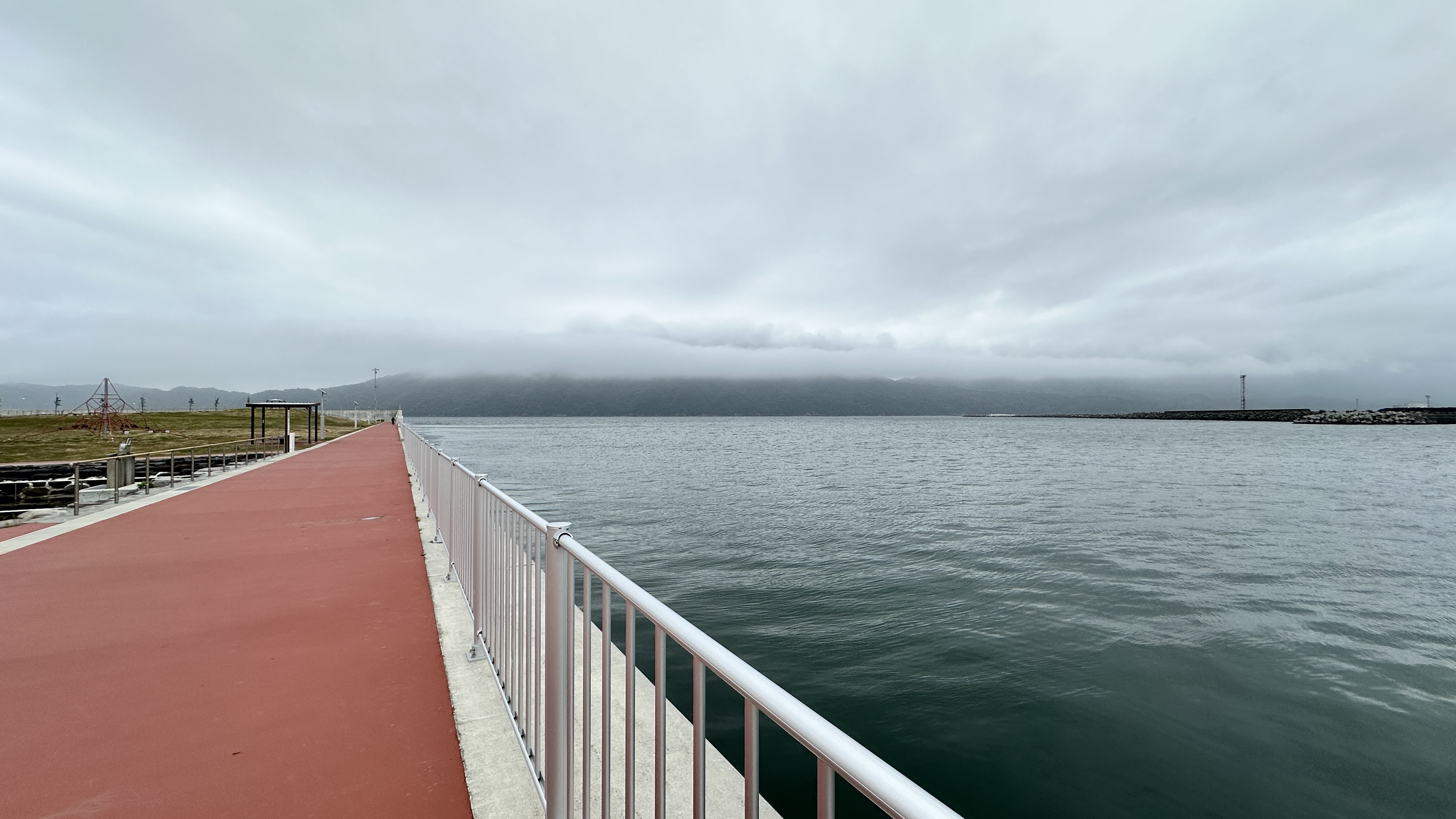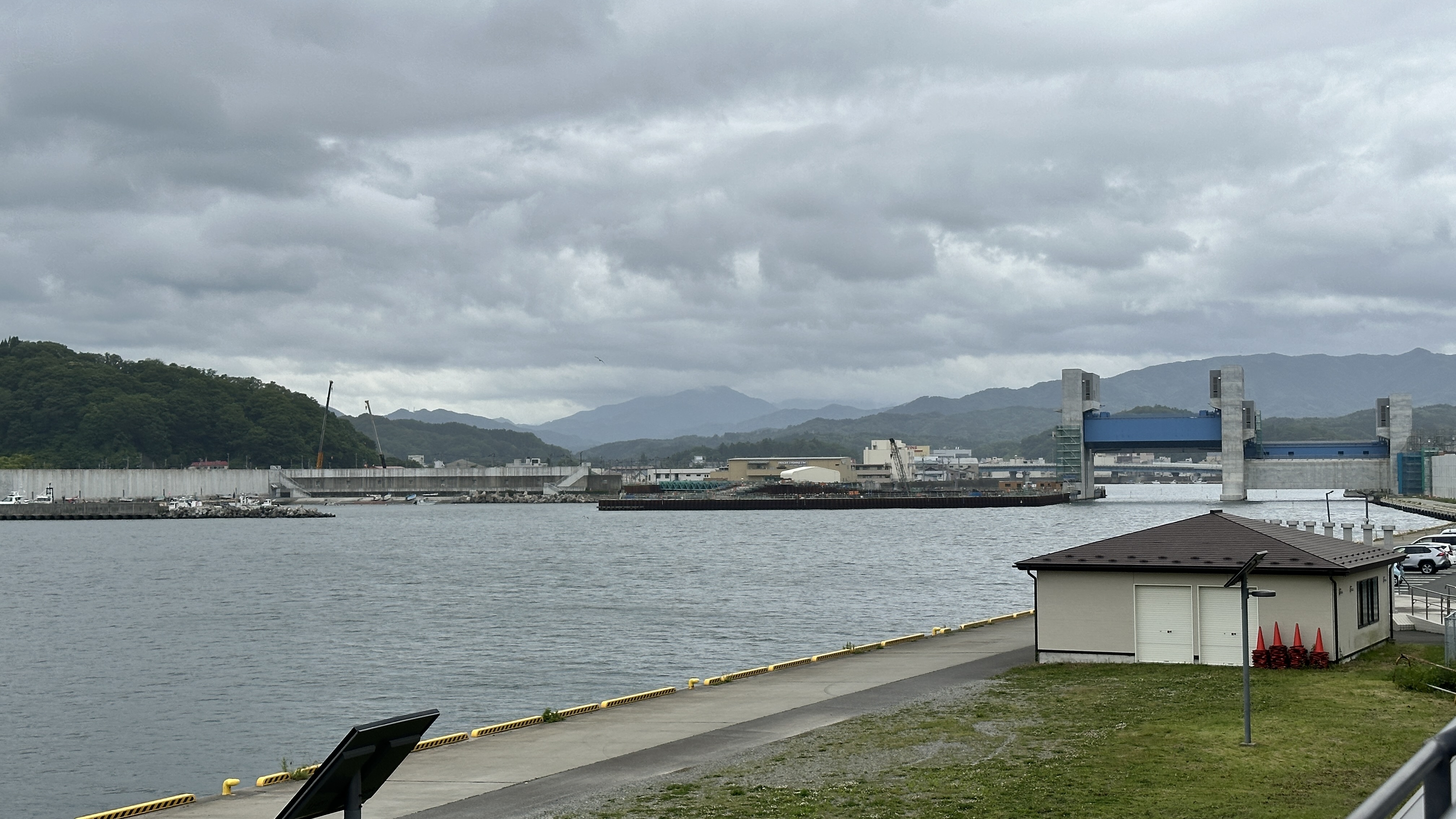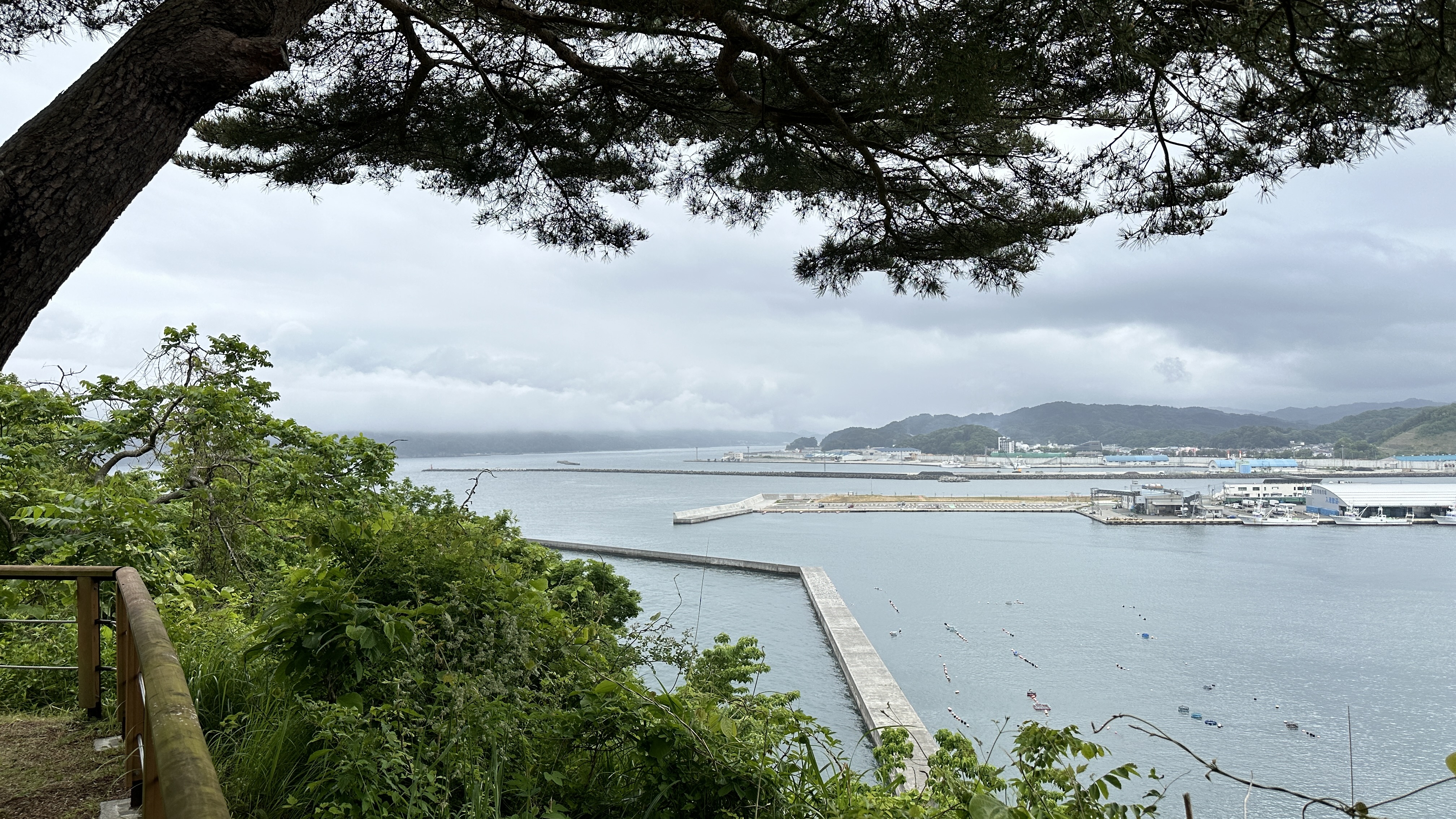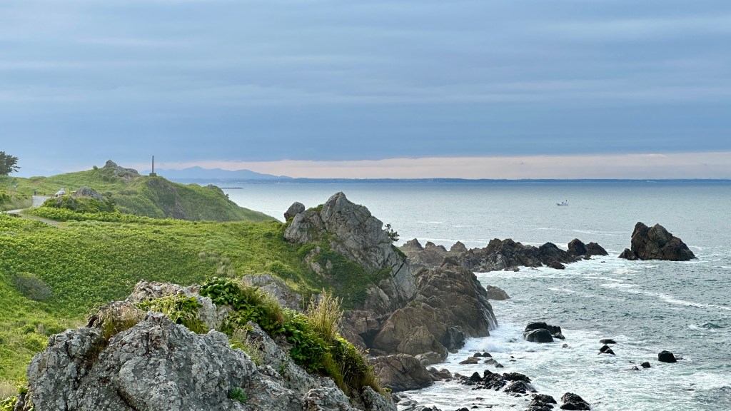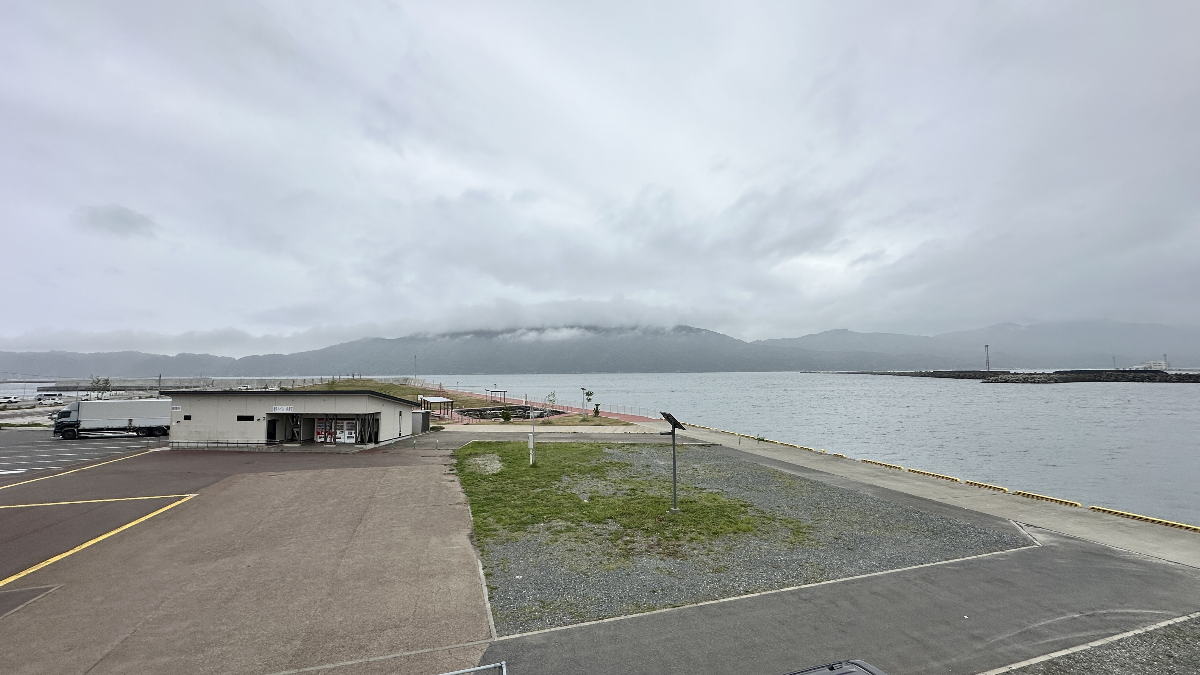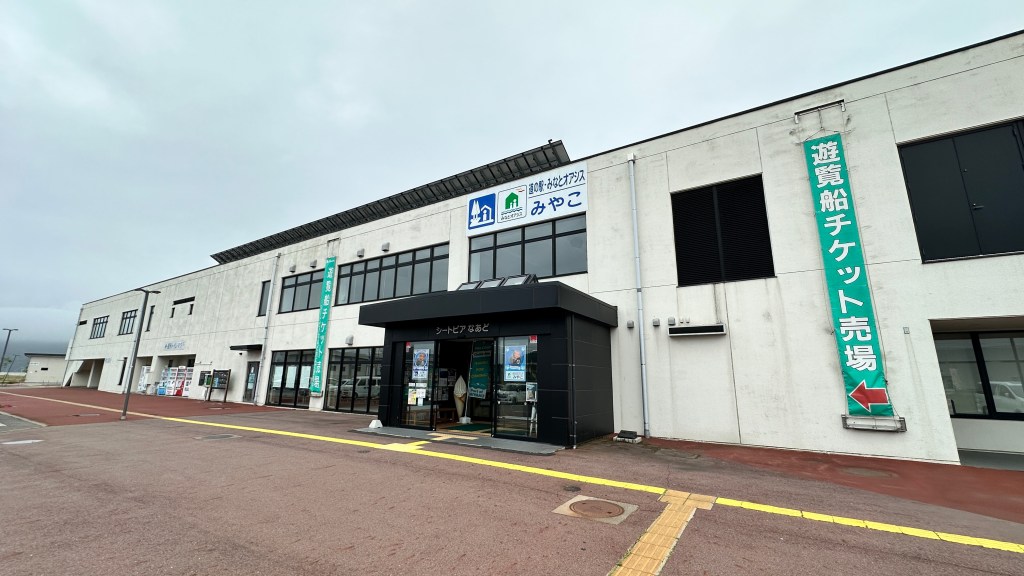 嗯,真是有點難以啟齒捏。會記錄下這個點完全是意外,因為我犯了一個相當低級的失誤…..(如下圖。)對!我居然在遊覽船的運休日來到這邊,到底!!!心裡不知道咒罵了自己幾次。但都遇到了,我也不可能隔天再跑一趟,索性就在這個遊客中心逛逛等待下一班巴士再前往淨土之濱了。雖說這邊只是個中繼處,外面也是規劃了好大一區讓遊客可以散步,然後被海風ㄙㄢˋ的類公園。反正我也沒船可以搭,就邊走邊在公園找了個視野好的座位,就吃起便利商店買的飯糰做午餐囉。這裡的港口景致還行,偏偏我遇上陰天,只能拍下幾張勉強及格的照片囉。(又運休又拍不好看,還有什麼用處啊我!)