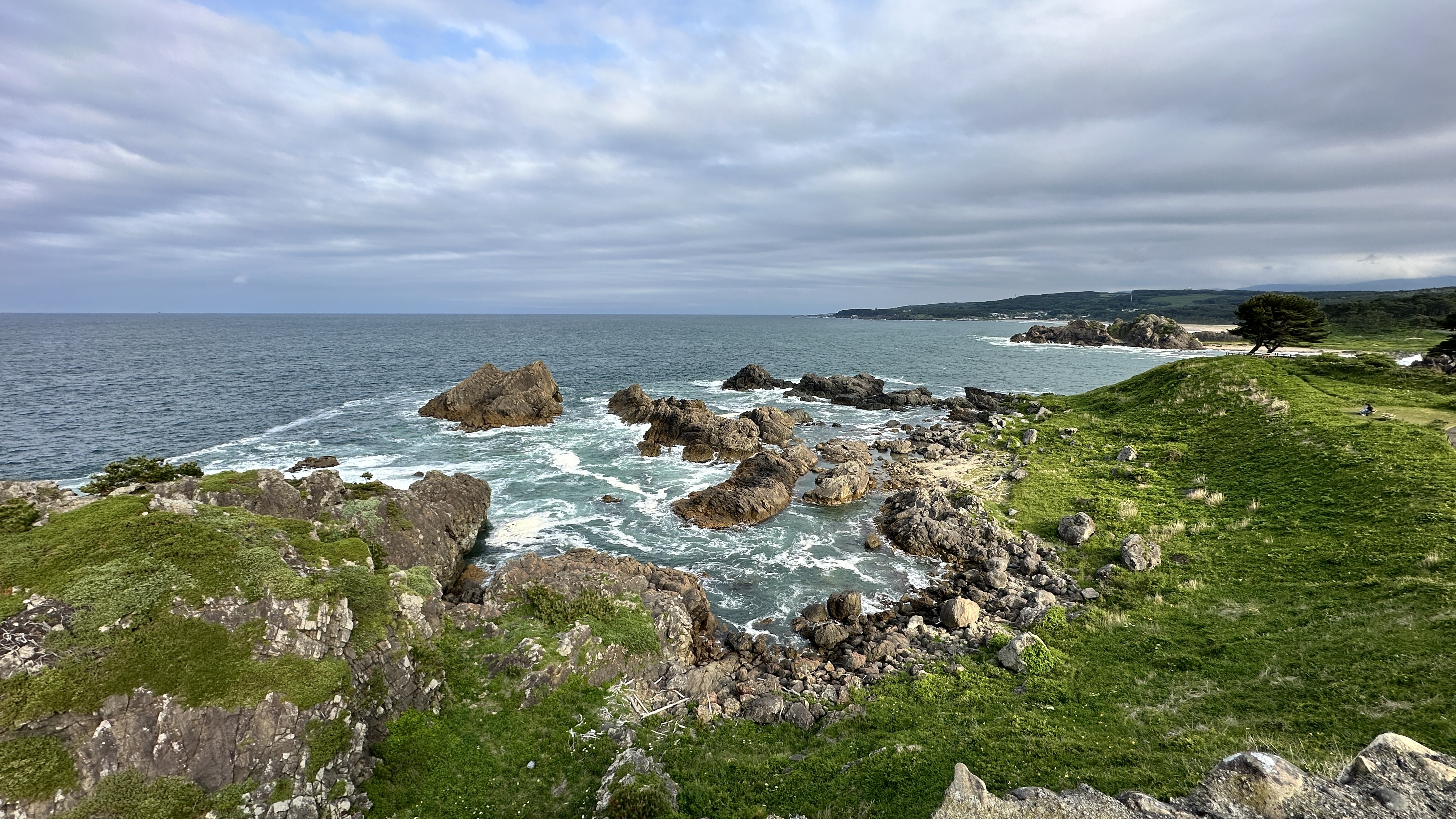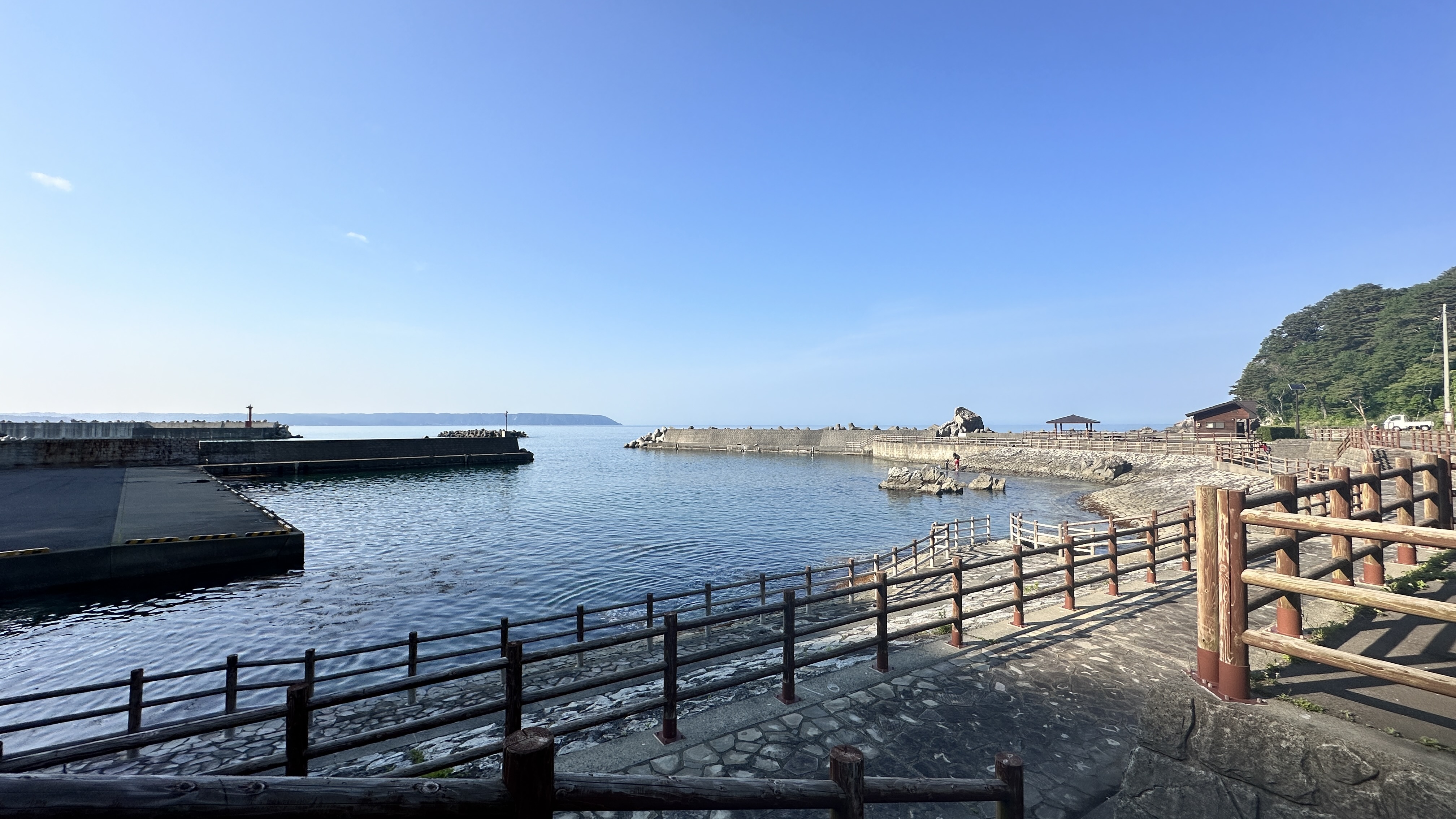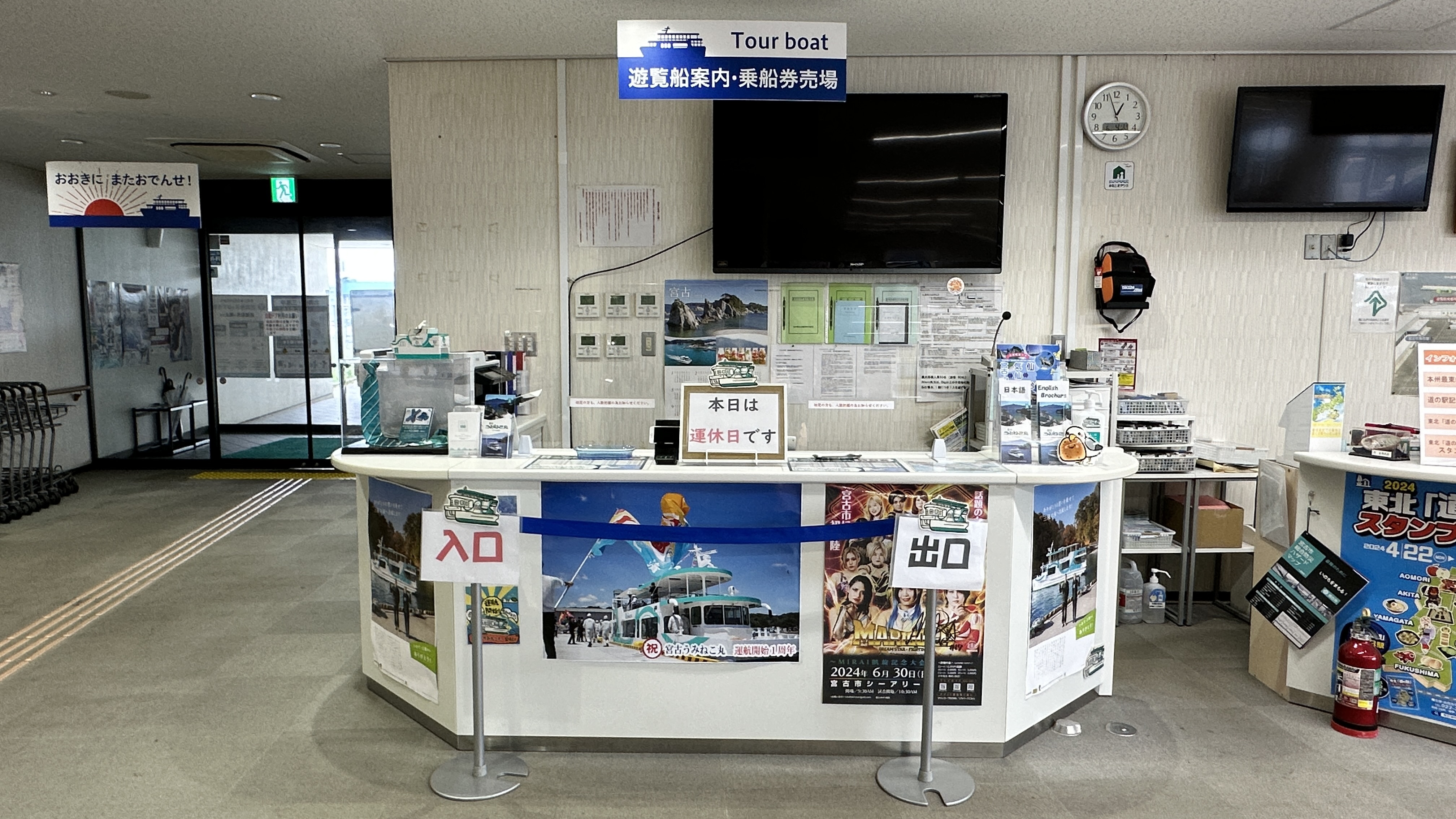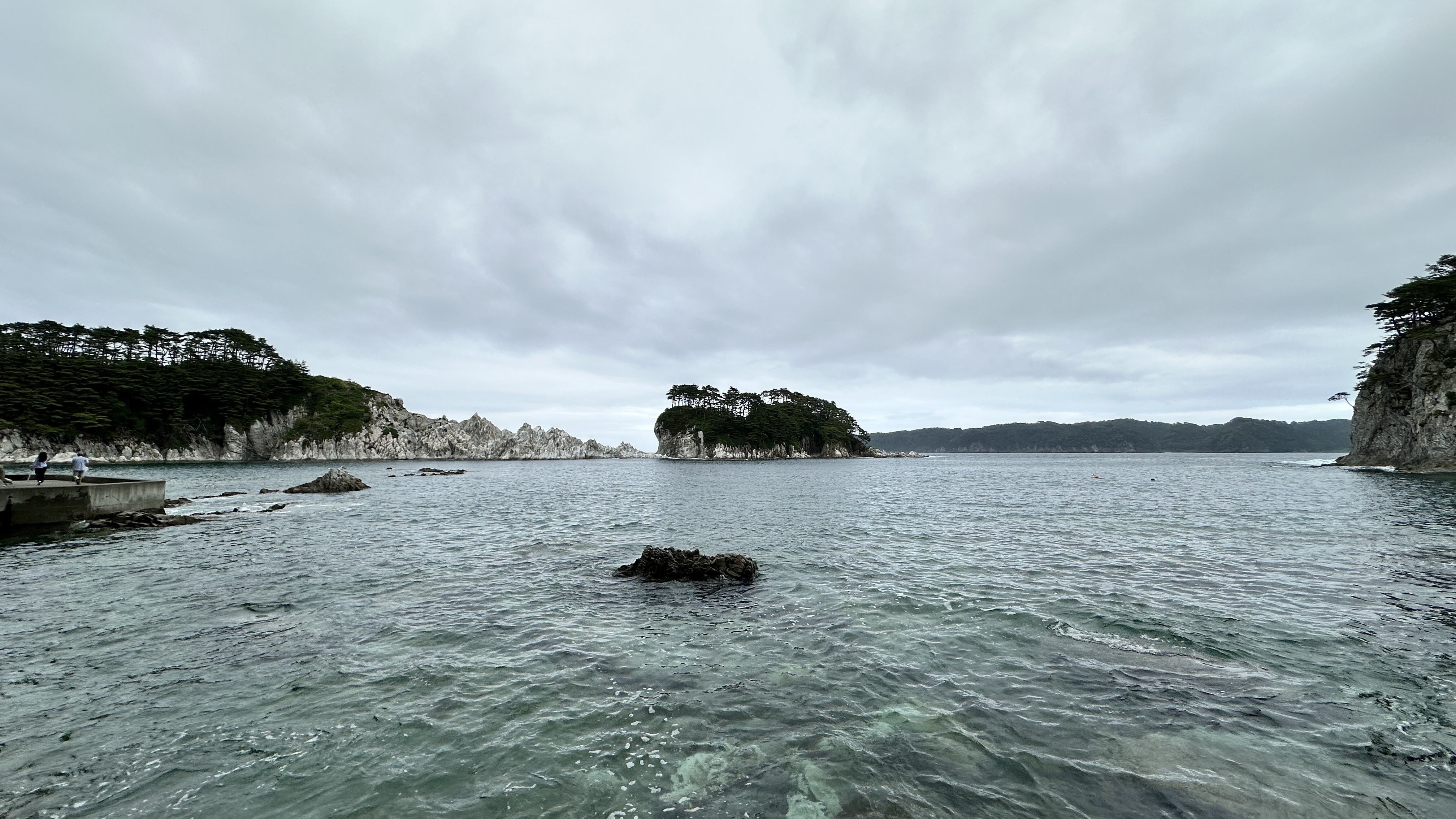 嗯,真是有點難以啟齒捏。會記錄下這個點完全是意外,因為我犯了一個相當低級的失誤…..(如下圖。)對!我居然在遊覽船的運休日來到這邊,到底!!!心裡不知道咒罵了自己幾次。但都遇到了,我也不可能隔天再跑一趟,索性就在這個遊客中心逛逛等待下一班巴士再前往淨土之濱了。雖說這邊只是個中繼處,外面也是規劃了好大一區讓遊客可以散步,然後被海風ㄙㄢˋ的類公園。反正我也沒船可以搭,就邊走邊在公園找了個視野好的座位,就吃起便利商店買的飯糰做午餐囉。這裡的港口景致還行,偏偏我遇上陰天,只能拍下幾張勉強及格的照片囉。(又運休又拍不好看,還有什麼用處啊我!)