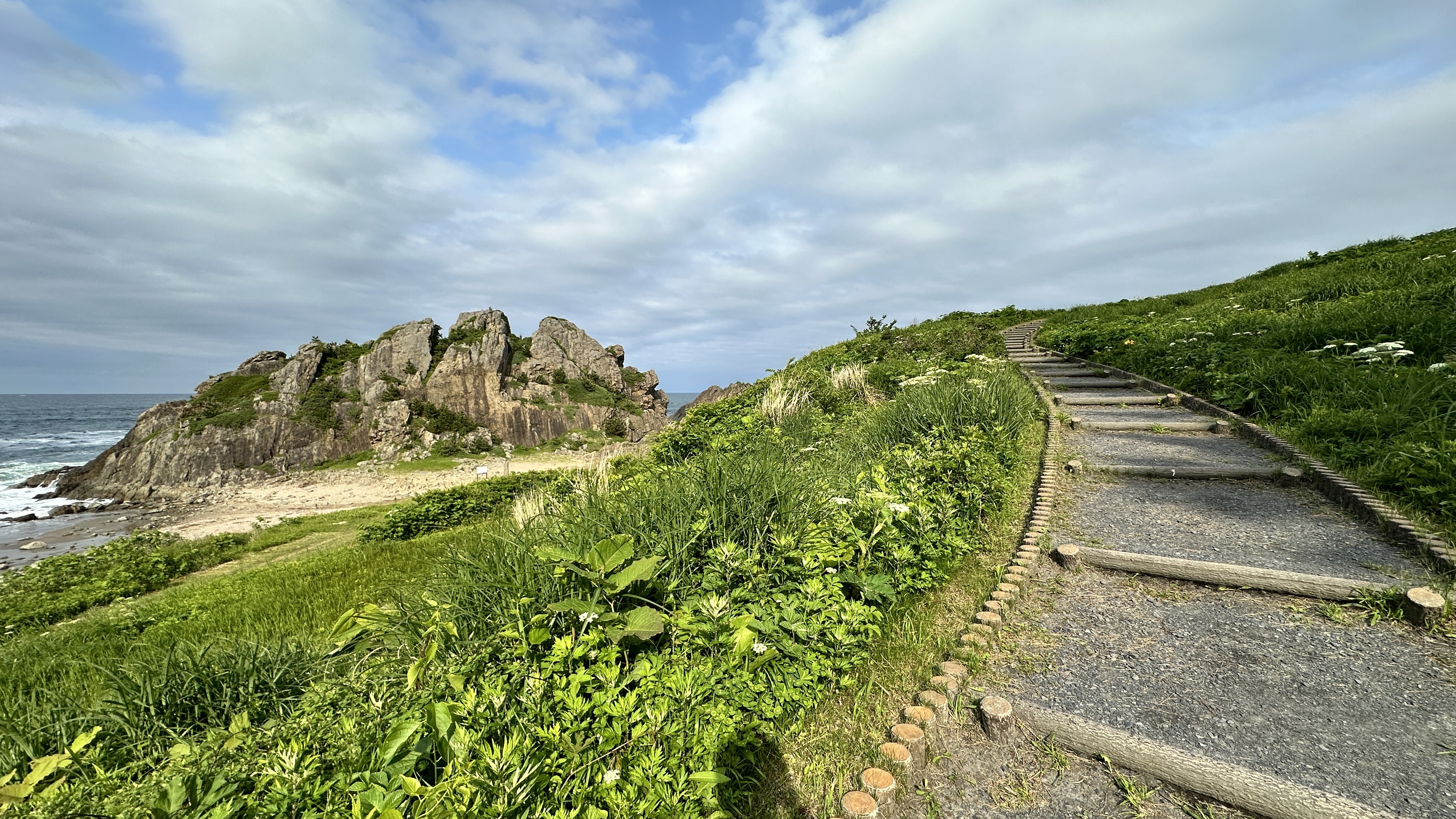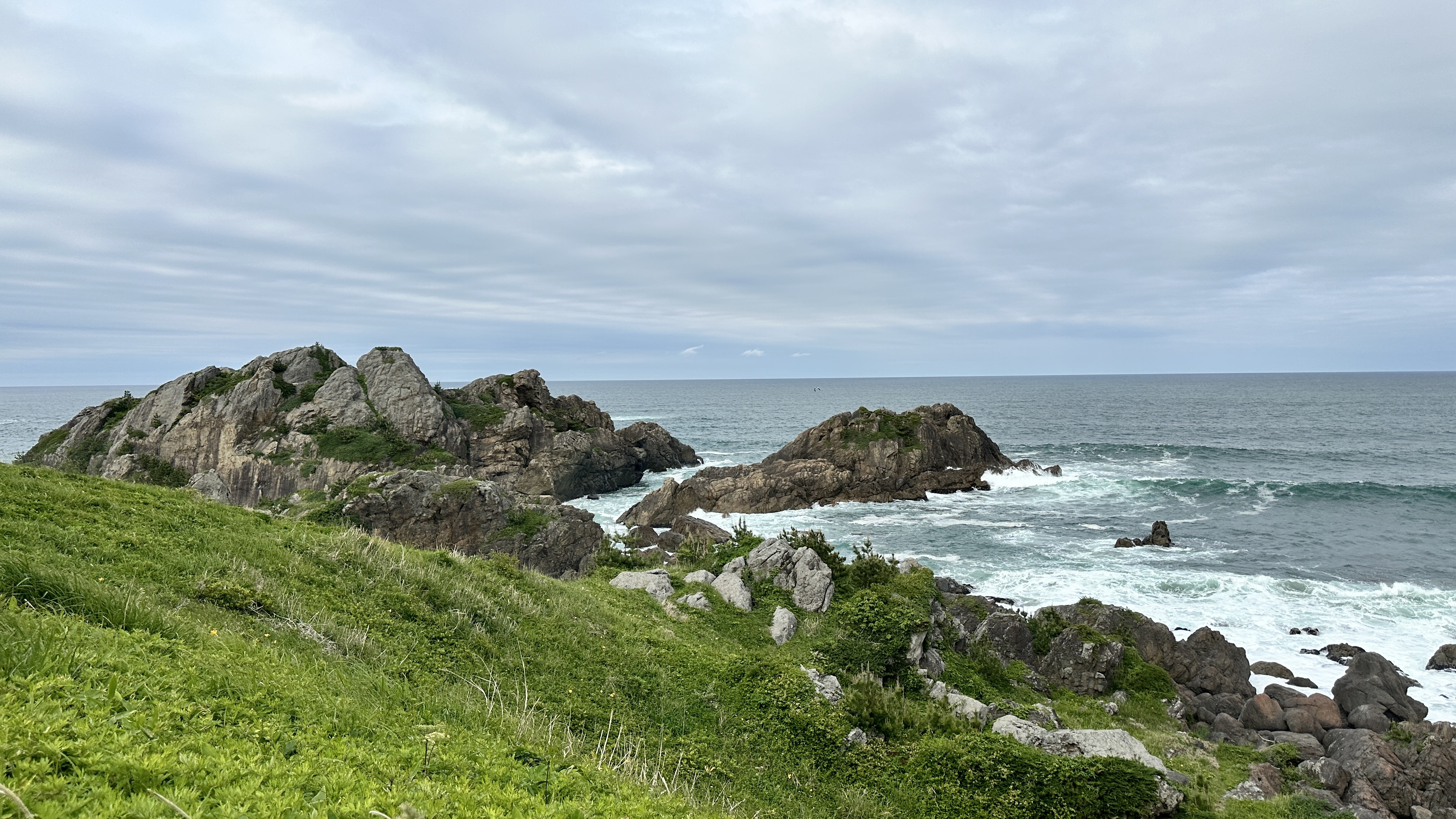 雖然我沒遊覽船可以搭,但我還是靠著巴士跟萬能的雙腿來到了這裡!我就是要來!(我開玩笑的,我本來就查好備案了,謝謝各位。)總之,搭巴士推薦在遊客中心就下車,裡面有些展示可以先看看,然後再慢慢沿著海岸走,會經過遊覽船停靠點(內心再度被刺傷。),接著一路走到奧淨土之濱。沿途都是岩岸地型,根據潮汐跟浪潮,有些路段可能會有海浪打上來,海岸散步的氛圍非常好。到了奧進土之濱有非常多的海鷗先生,基本上都不怕人,可以近距離跟他們合影,看他們姿勢有多帥氣!好了,說正經的,這邊的海岸景色很壯觀也很有特色,我是第三天就來到這邊,讓我對後續旅程充滿期待,就知道這裡有多威了吧!