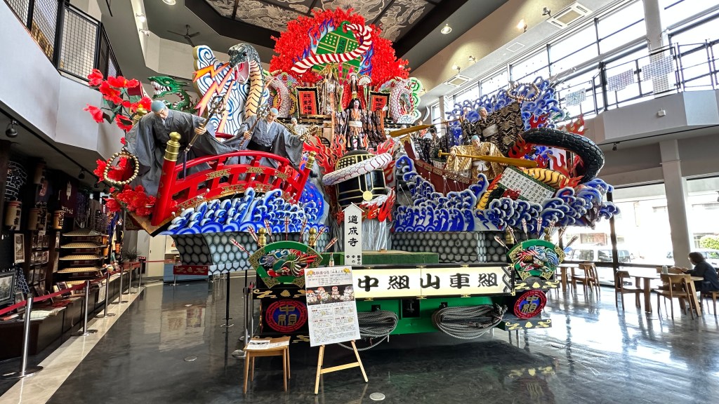 - 展示在久慈秋祭中實際使用的花車和神轎