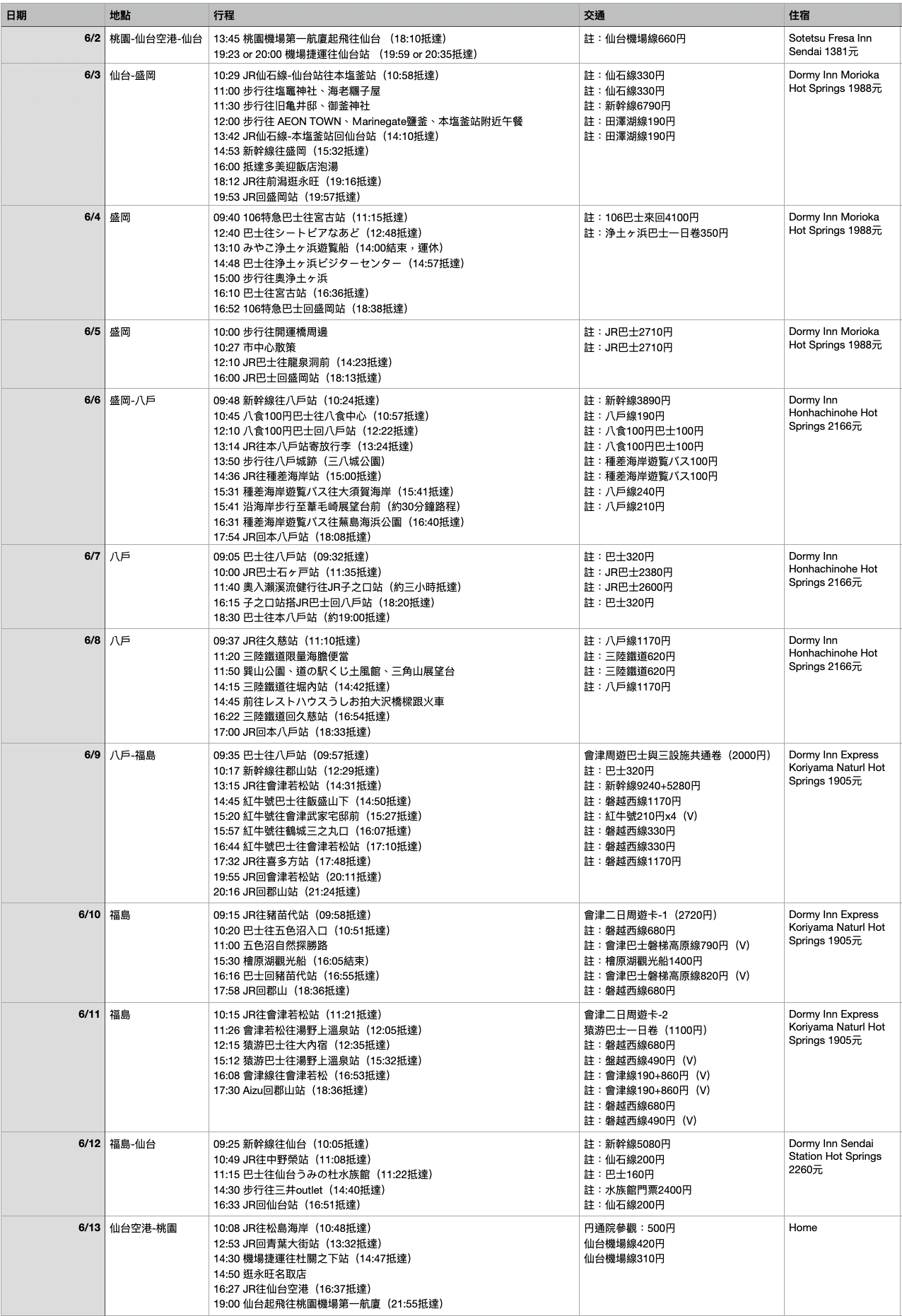 - 交通(Access):JR巴士東北(JR Bus Tohoku)